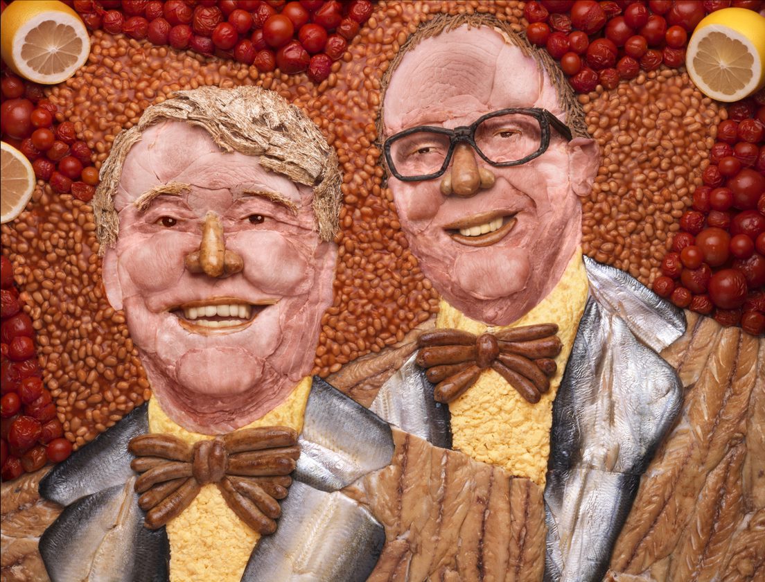 This image of Morecombe & Wise is another example of how well the use of food as a medium can be used to represent anything . This scene is entirely made from fresh food. Some very clever use of ingredients and traditional modelmaking by our team. Photography by Karl Kliener.